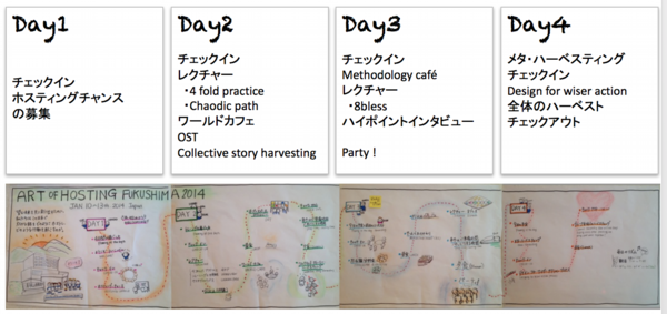 Art of Hosting and Harvesting(AoH)は、複雑性・不確実性・多様性・創造性をコミュニティーや組織に包含するための、分有リーダーシップを学び、実践する合宿型トレーニングであり、組織開発の実践です。