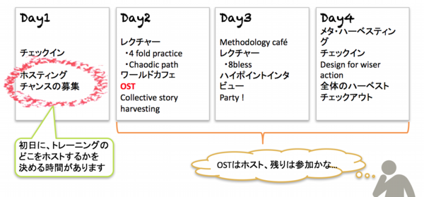 このトレーニングは個人の想いを組織やコミュニティレベルにスケールアップさせる変容プロセスを辿ることを目指して行います。