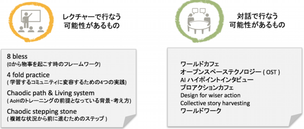 2017のトレーニングでも、対話型組織開発の戦略的プロセス設計が一番優れているAoHの思想と手法を用います。AoHは、トレーニングのためにも、実際の組織開発のためにも用いられる手法です。